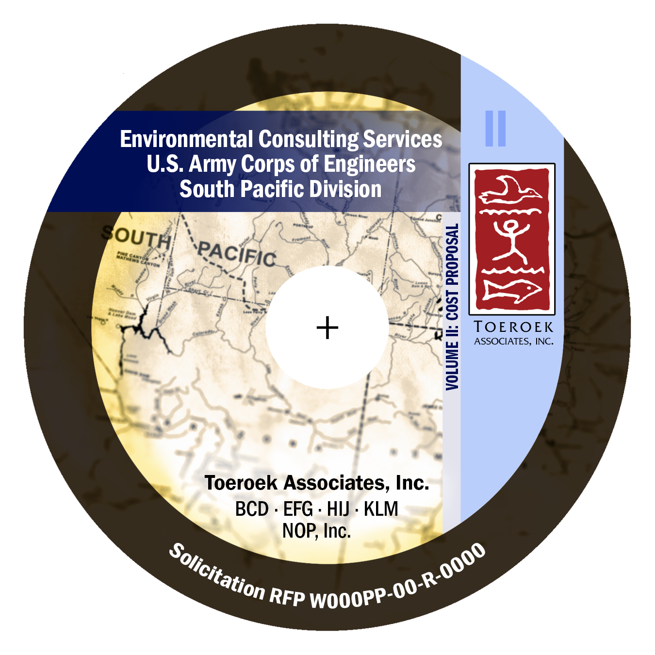 Cover art, CD art, and org chart for a government proposal.